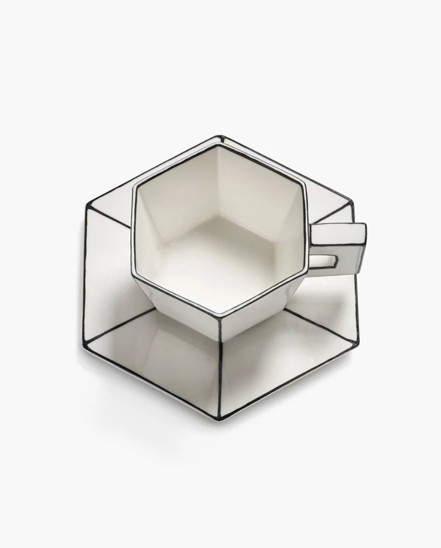 La tasse à cappuccino avec soucoupe de la collection Carte Blanche évoque la spontanéité d’un premier croquis. Avec ses contours peints à la main et son asymétrie douce, Annebet Philips transforme une tasse à café classique en un objet poétique.